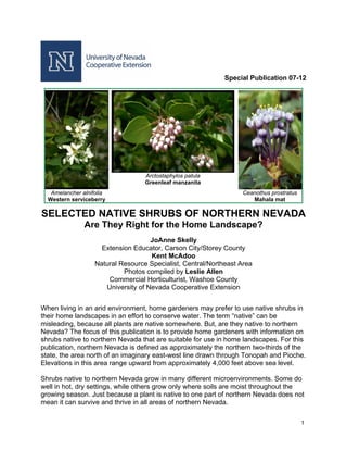 Selected Native Shrubs Of Northern Nevada Are They Right For The Home Landscape University Of Nevada